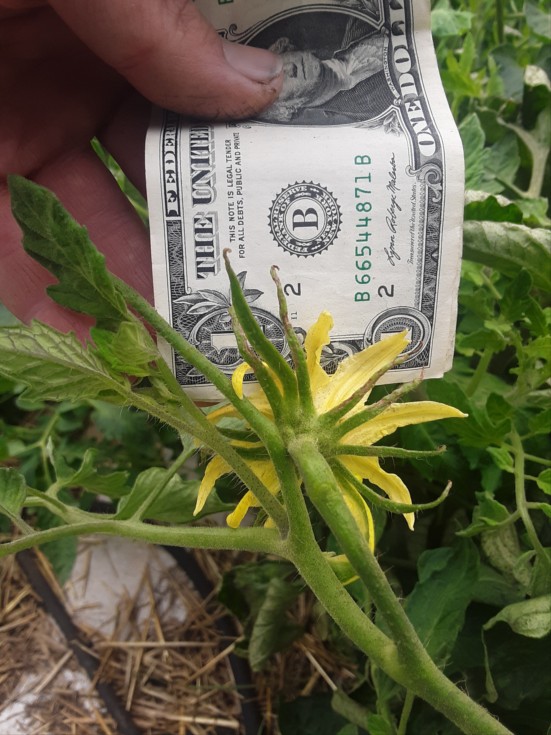 The 3.9 Leurs is trying so hard. Really big plant. Huge flowers, this thing is its idea of a single! Yet... average tomatoes? Interesting.