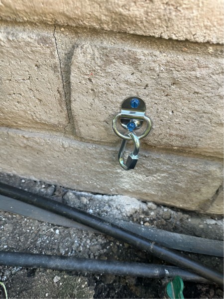Time to move the pumpkin. Every year it seems like I've gotta pull it in a different direction and have to install a new anchor point.