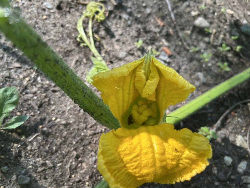 I pollinated one female on the direct seeded plant this morning. There are four females on the other plant that are getting very close too. Once one gets to basketball size the other plant will be removed.