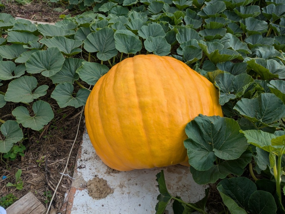 My two main pumpkins could have been called "Beauty" and "Beast" respectively. Here is Scrub at 45 DAP, an undeniable beauty.