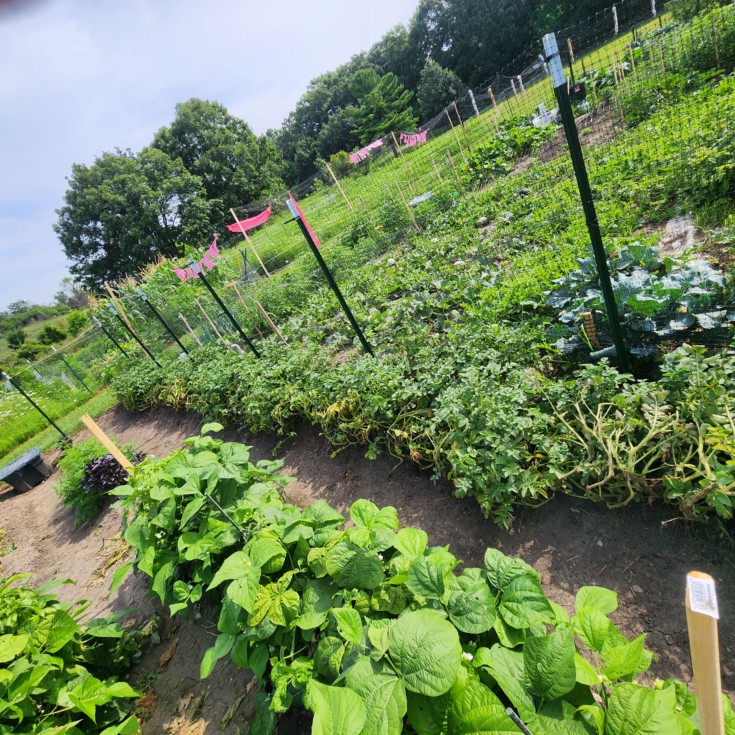 Area within stakes is my garden. Beans, potatoes and carrots. Treating the potatoes with a fungicide. Staying patient.