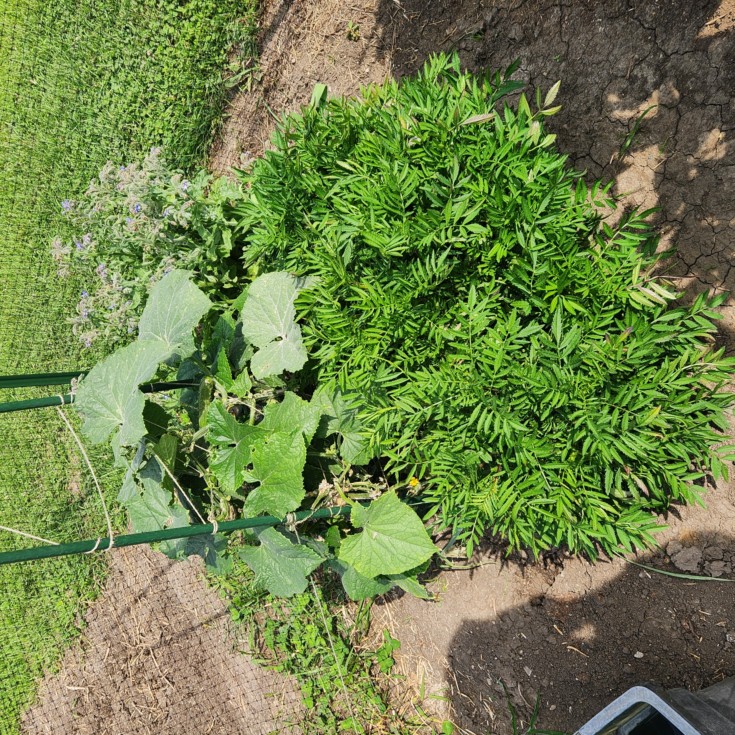 Dwarf cukes I grew also from seeds along with my giant marigolds. I picked so many cukes and they are very good tasting.
