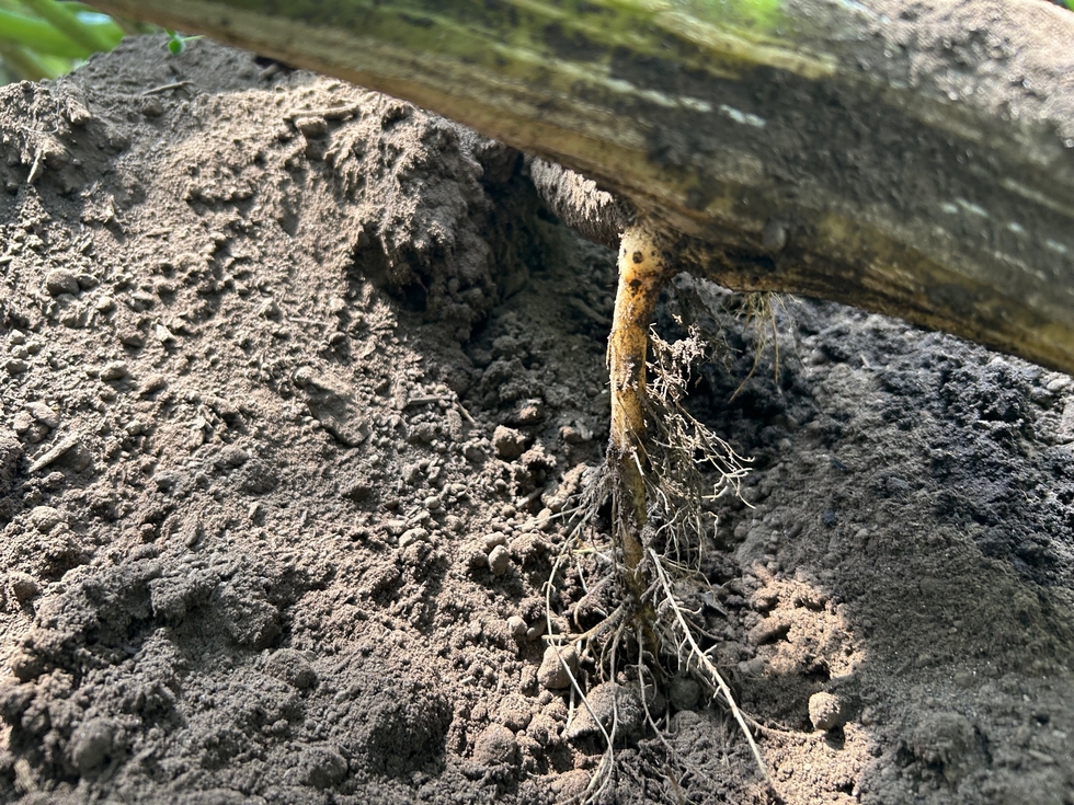I now have five less working tap roots leading up to my fruit. I guess this is better than letting it tear itself off the vine!