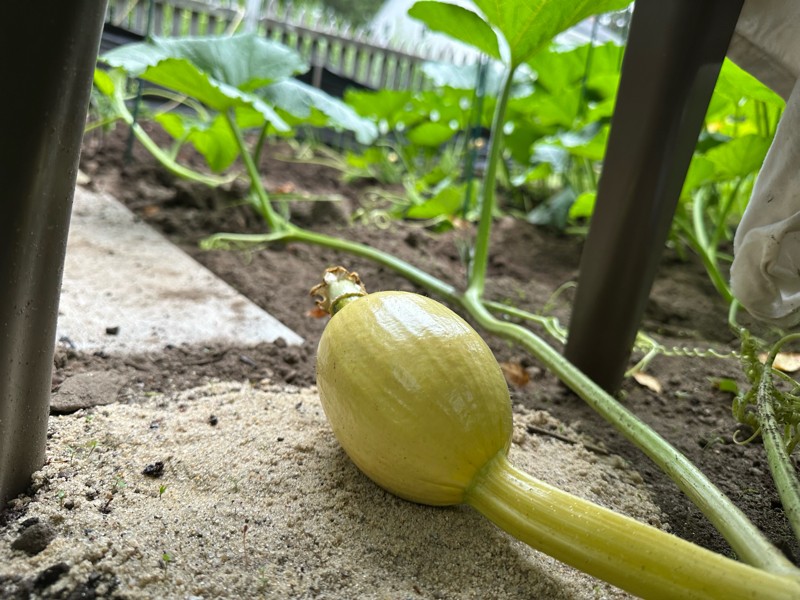 And yes we've got a pumpkin on the plant! 7 days old with chilly night temperatures. Looks like she's taken. I have a few backups on the plant. 66 days until the Rhode Island weighoff! Maybe we can get a nice orange pumpkin. My 1349 was off the 839 Sandercock and crossed with my 1197 which is an orange producer. Probably only get her to a few hundred pounds if all goes well but would be nice to get a nice orange one