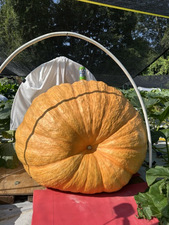 2198 Sperry Dap 40 Side to Side: 93in Front to End: 91in Circumference: 139in OTT: 323in Est. Weight: 789lbs Rate of Gain: 19.4lbs/day I was hoping that the "extra" watering I was doing would get the pumpkin growing faster but that wasn't the case. I'm sure it has something to do with the rotten spot in the stem. That being said, If we can just keep chugging along and get a 1000lb+ pumpkin to Durham I will be the happiest guy in the world.