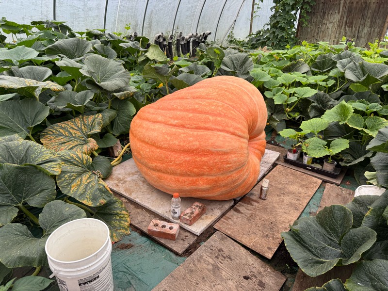Even with all the problems that this plant has it's still growing a bit. It has been really cloudy and rainy so that doesn't help. Some places got frost last night. Est just under 1100.