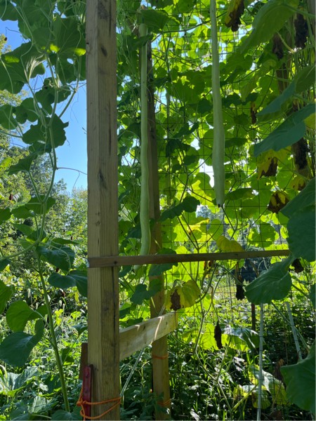 I have kept 2 long gourds and they are hanging pretty low for only day 20 or so.
