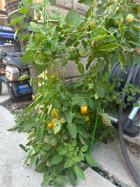 Henry the crack tomato plant is producing. I believe this is a Sungold hybrid that I had in the yard last year. Can't believe how well this plant has done in a 1.5" crack!! All I did was throw in a couple Super Starter Paks.
