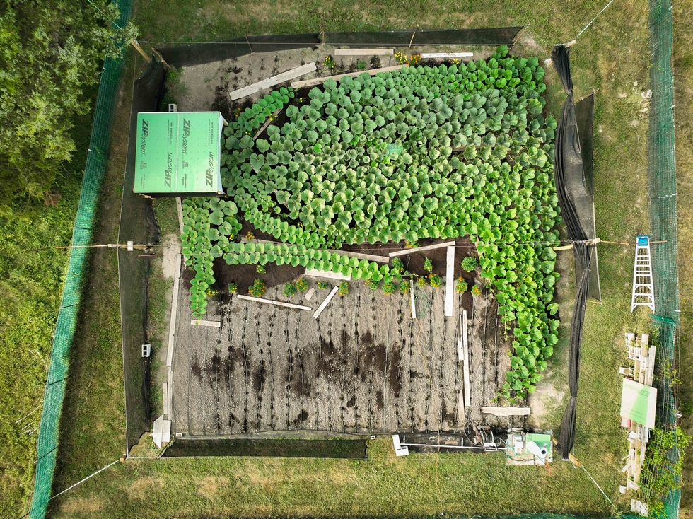 DAP 50 OTT 329 est weight 833 lbs. Pumpkin growth is slowing down a little at 18 lbs/day over the past 10 days. The plant has a lot of new growth at the farthest ends of the secondaries which I am curving around to fill in the empty space. Minimal disease pressure and leaves looking good. Not quite sure why this doesn't translate to more gains on the pumpkin. Also, the good news is I finally caught the mole. Not with any trap or bait, but dug him out bare handed.