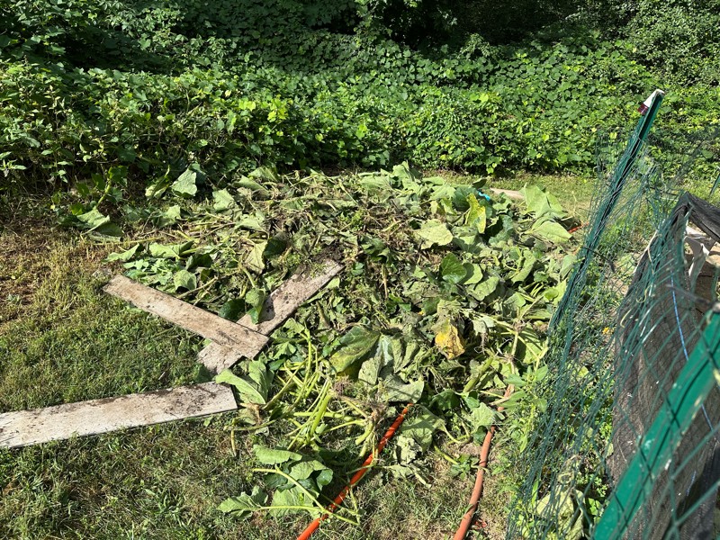 A few days ago I made the decision to pull the butternut plant. Every single butternut that I pollinated this year and the bees aborted! I don't know what happened because I've never had that issue before. Maybe it was over fertilized but not 100% sure. Strange. Definitely spent a lot of work on the plant but it happens! I will give it another go next year!