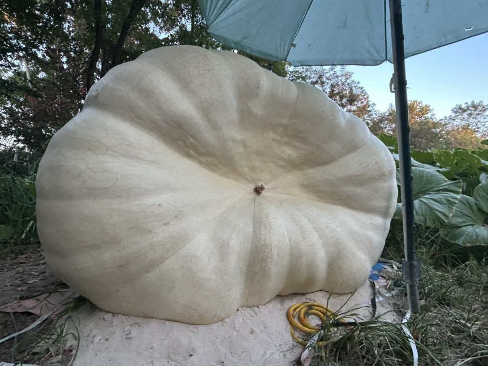 Roughly 800lbs, inches are getting hard to come by. Feeling more like fall. 47 days to go, plant looks ok no powdery mildew yet, hopefully a good September gets me over a thousand and hoping for heavy at the scale. Best of luck everybody! Grow big!