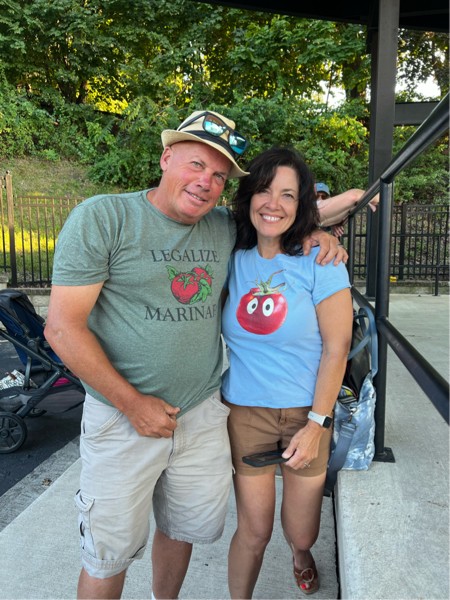 Well you have to make the best out of it. I picked one and off we went to the Pittston Tomato festival. 4 days of celebration of the tomato with 100,000 people attending and yes they have a tomato contest. Trophies for the smallest, largest, ugliest and most perfect. Val and I donned our tomato shirts and away we went.