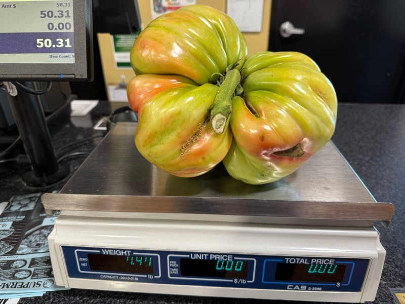 Here is our tomato from our 7.28 Young seed. We were happy to be in the 7 pound club again! Official weight was 7.47 pounds.