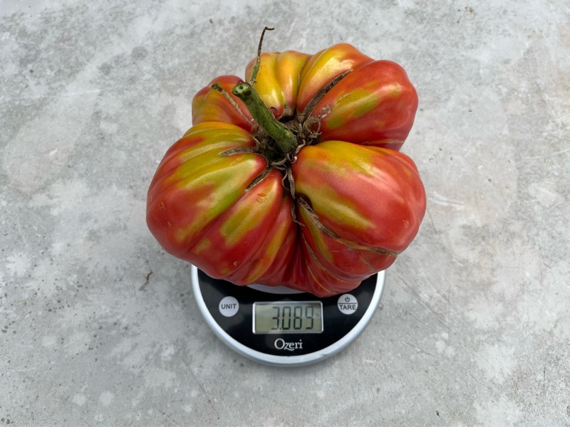 I missed a rot spot on the bottom of this tomato on a 8.51 La Rue plant.