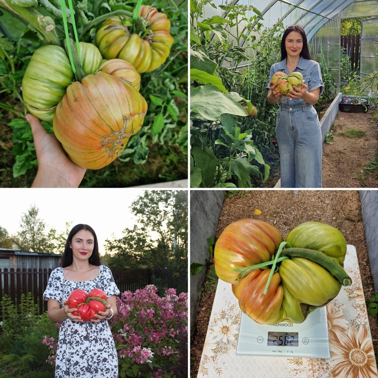 I want to show off the result in giant tomatoes from a member of our giant vegetable growers club in Russia. This girl's name is Julia, she lives in the far north region, the city of Arkhangelsk. For the first time in her life, and in Russia in general, in the northern region, Julia grew a tomato weighing 2 kilograms (582 grams). Tomatoes are grown absolutely on organic fertilizers. We are proud of our participants.