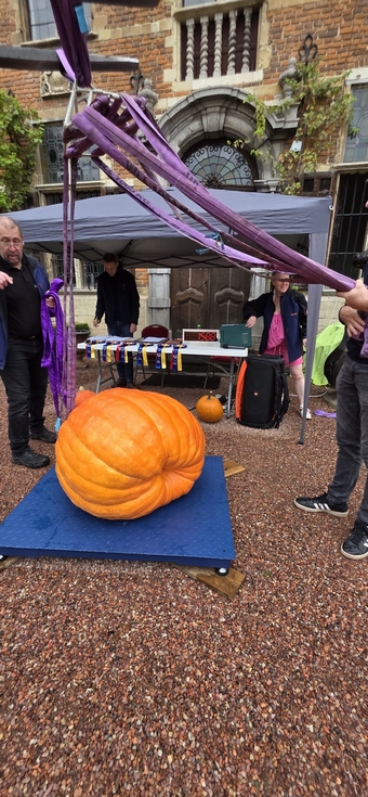 Yesterday at the Brussels open weigh-off, the 150 sq ft pumpkin was officially weighed at 158.8 kg (350 lbs).