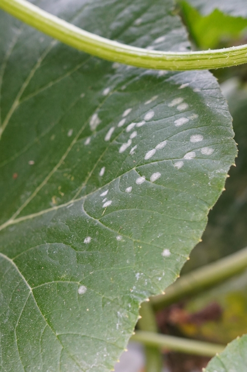 These visual characteristics is what is often seen in field pumpkin varieties listed as PMR (Powdery Mildew Resistant)