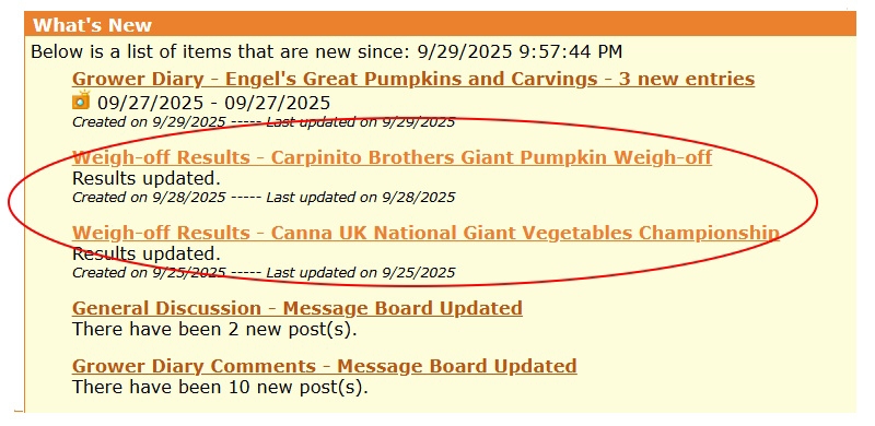 I am experimenting with a What's New update for Premium members. When a weigh-off site updates their results since you last came to the site, it will show up as a link. Let me know what you think of this.