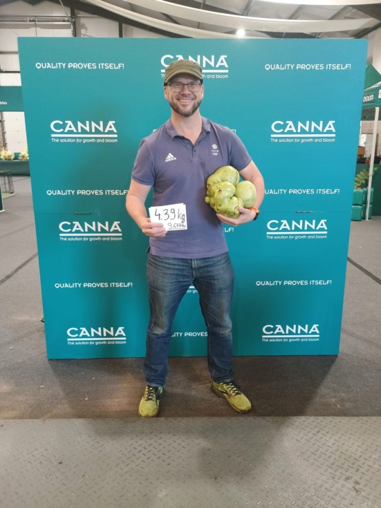 Weighing in at the UK Giant Vegetable Championships at Malvern. 4.39 kg - 9.68 lb