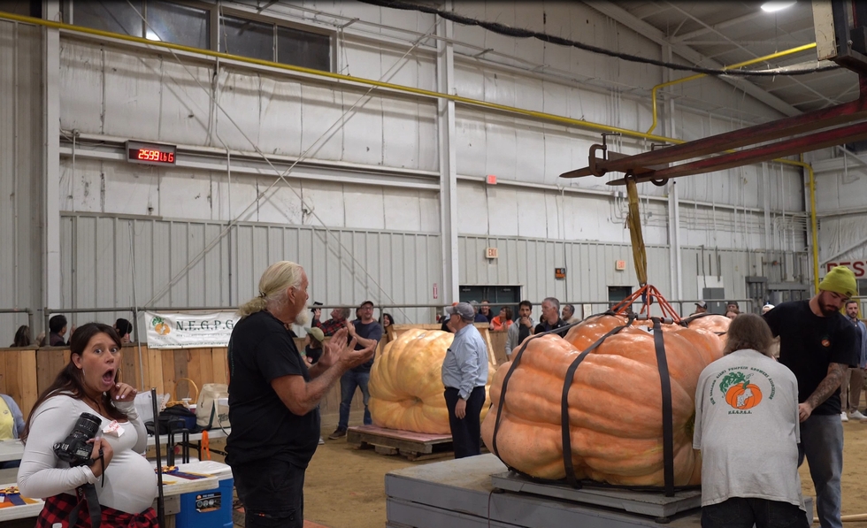 It is hard to capture the moment and excitement when a pumpkin is first placed on a scale with a visible and live updating readout display. While there were many mixed emotions, this image is a good capture of the electric energy that was present on the initial touch down on the scale.