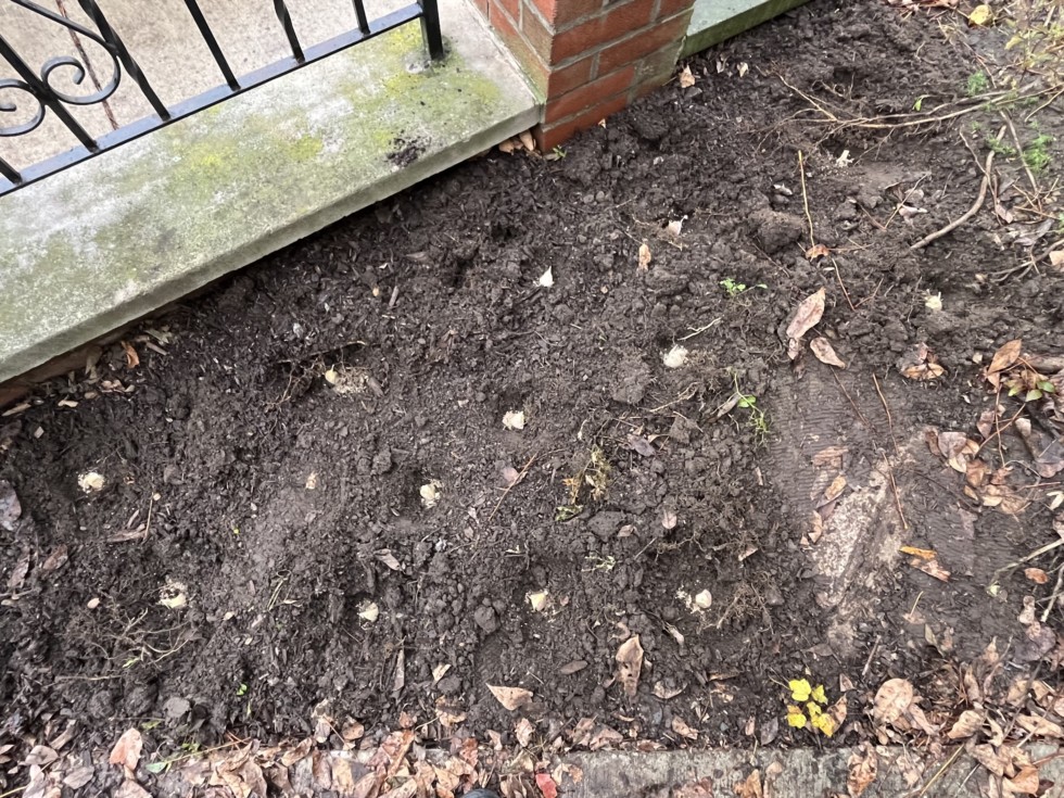 I planted 13 cloves of Red Russian Garlic onsite in Boston this morning. I have never grown Garlic before. I really enjoy a winter garden.
