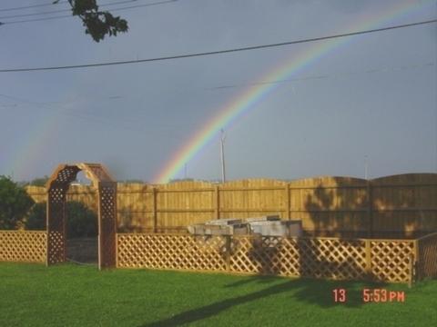 Rainbow coming into the patch, a blessing from God.