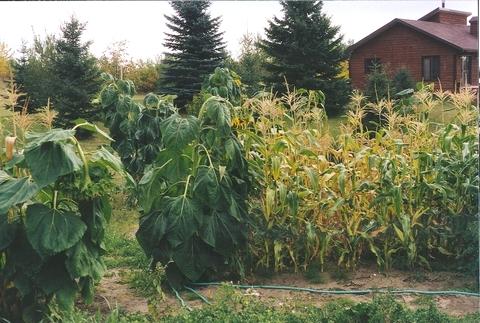 My sunflowers this year were enormous, nothing shorter than 8'. My house is in the right in the background.