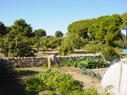 Preparing the place for carrot, winter onions and garlic. In the right, the winter tomatoes greenhouse. On the background, the fig trees.