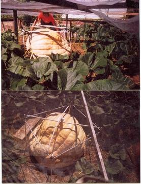 852.4 Sawtelle: Grown from a 712 Kuhn, male pollinator was the 975 Gervaise. 20 packets of 2 seeds sent to big pumpkins seed giveaway. Seed stock almost exaused on 1-17-03.