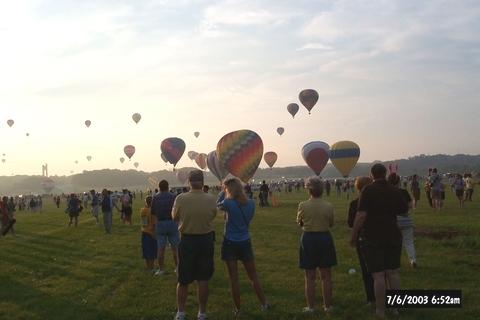 Liftoff of a few of the estimated 125-150 Hot air balloons. Taken Sunday July 6th Delayed one day due to extreme thunder storms.