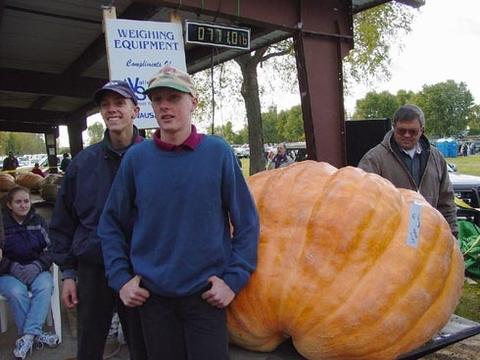 The Pillman boys rolled in with a 771 lb orange fruit grown on a 940 Koch 02. Last year they set our new Watermelon record of 181 lbs!
