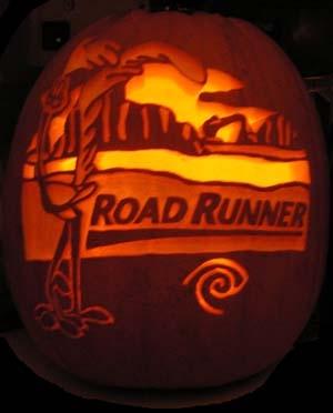 Carved for my husband, Principle Engineer of Network Management at Time-Warner Cable (at the time of this carving it was Time-Warner Road Runner, hence the famous bird on the pumpkin), and was featured in the company's newsletter.