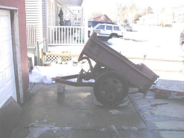 Here's a cool 4x6 x 1.25deep dump trailer I picked up on Ebay for less than 300 bucks. It needs some modifications and Im in the investigation stages now. Can anyone ID the axle/wheels? I took the lugnuts off and the ring beneath it (hanging) but cannot get the wheel off yet. Axel is off an old car/truck...tires are 7.00 - 20 or 32x6 10 ply...lugs are 4-1/2 spread. Help !