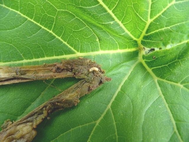 Planted a 1' tall tomato and it started to wilt 2 days later. Broke the stem open a week later and found this guy. Can anyone identify it?
