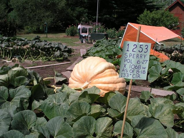 The first pumpkin we saw in the patch of Ron and Dick Wallace was this nice one growing on a 1253 Sperry. They crossed it with the 1068 Wallace.