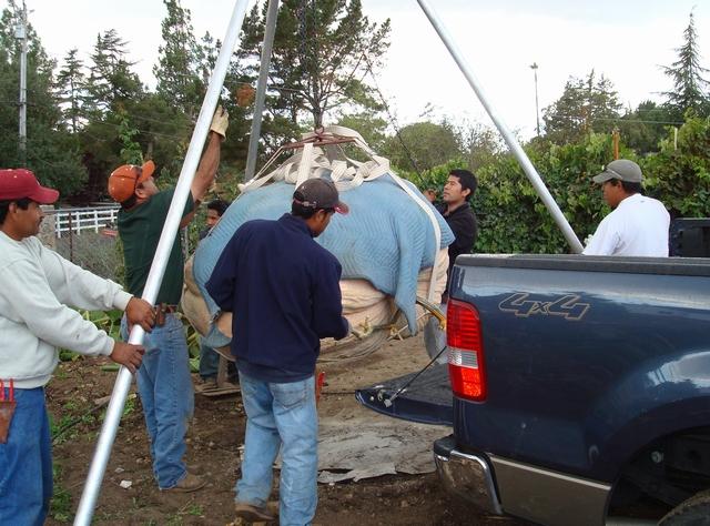 The truck is backed up for loading.