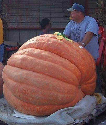 Here is Jerry with his 1317 Rose 2007. Beautiful tall orange pumpkin.