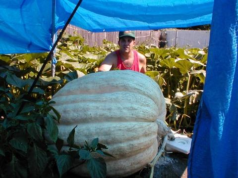 This is me and my big pumpkin. Approximately 450 lbs, but hope to grow to 650 lbs.