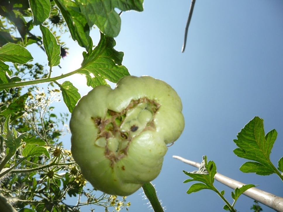 Bottom view of the currently biggest tomato on my second 7.33 Hunt plant.