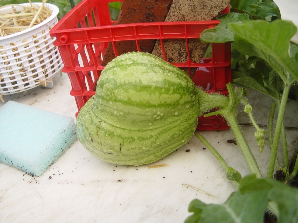 This is my very rare Siamese twin Carolina Cross watermelon. I believe it to be unique in the Carolina Cross variety.