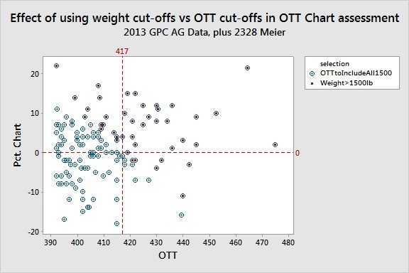 Effect of using a weight cut-off vs an OTT cut-off in OTT chart assessment