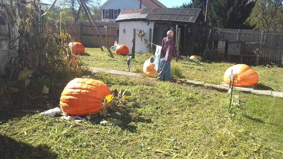 my pumpkin patch today getting ready to lift them up this week a lot of orange