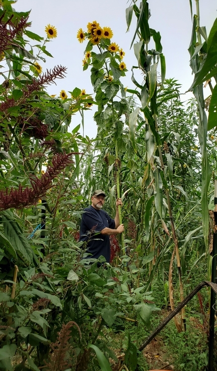 This sunflower was crowded out by larger neighbors, but when they came down during a storm, this was the plant left standing.