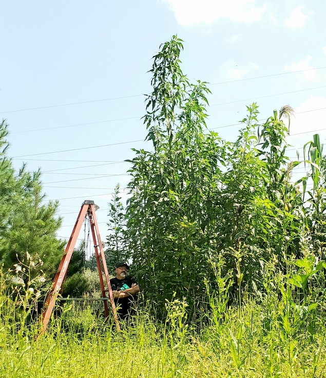 Picture of the 26'1" in the garden at the end of August. At the time this picture was taken it was not full height. It continued growing until I took it down October 21st.