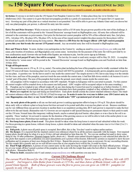 THe 150 Challenge is Open to all growers. If you need a clearer copy of the rules sendemail to pumpconn@msn.com